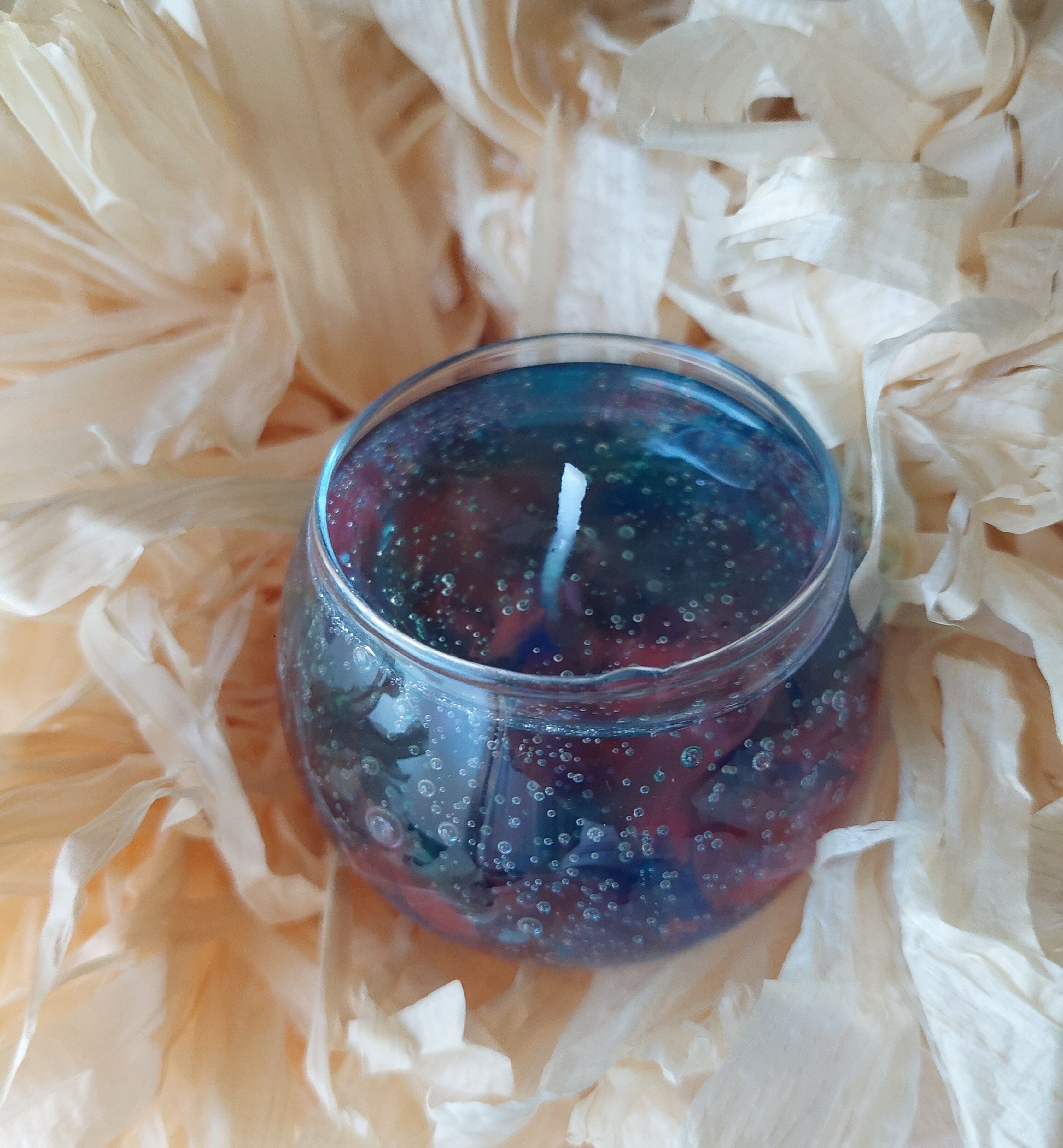 金魚鉢みたいなまんまるジェルキャンドルになります。